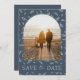 Boho Royal Blue Opulence Verlasse Foto Wedding Save the Dates, eine perfekte Mischung aus Eleganz und Charme. Atemberaubendes Aquarelldesign mit zartem Blau-Weiß-Blätter mit einem Monogramm der Initialen des Paares auf der Kartenrückseite. Diese Einladungen erinnern an eine moderne botanische Eleganz, die sich ideal für eine Winterhochzeit eignet. Das minimalistische Layout sorgt für eine einfache, aber auffällige Präsentation. Erleben Sie die Schönheit der königsblauen und botanischen Kunst, um den Ton für Ihren besonderen Tag Set