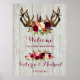 Hübsch Boho inspirierte rustikales "Begrüßungszeichen" mit Anglern mit Aquarellfarben-Blume vor einem Stallholzhintergrund.Ideal für einen Herbst oder eine Hochzeit zu jeder Zeit
