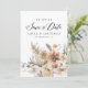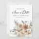 Boho Rustic wurde Save the Date mit Blumenbildern im Erdton entworfen. Passen Sie Ihre Karte an, indem Sie Ihr Lieblings-Foto auf der Rückseite hinzufügen. Cava Party Design