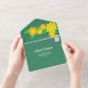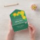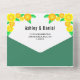 Diese elegante Einladung zur Sonnenblumen-Hochzeit ist perfekt für eine moderne Blumenhochzeit. Das schlichte Design mit blühenden gelben und orangefarbenen Sonnenblumen und eleganter weißer Typografie auf grünem Hintergrund.