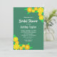 Die elegante Brause-Brause lädt zu einem modernen Brautparty mit Blumen ein. Das schlichte Design mit blühenden gelben und orangefarbenen Sonnenblumen und eleganter weißer Typografie auf grünem Hintergrund.