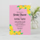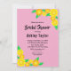 Die elegante Brause-Brause lädt zu einem modernen Brautparty mit Blumen ein. Das schlichte Design mit blühenden gelben und orangefarbenen Sonnenblumen und eleganter schwarzer Typografie auf einem rot-rosa Hintergrund.
