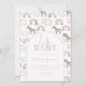 Boho Safari Tiere Arch Pastel Baby Dusche Einladung mit Aquarelltieren in rosa Farben.