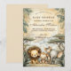 Welcome guests to a warm and whimsical celebration with this Safari-themed baby shower design. Featuring a sweet trio of jungle friends — a giraffe, elephant, and lion — framed by rich boho foliage, earthy neutrals, and soft natural textures.