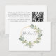Provide your guests with all the essential information in style with this elegant eucalyptus wedding details card. Featuring a soft watercolor greenery wreath paired with delicate faux gold rings, this design brings a natural yet refined touch to your wedding stationery suite. Perfect for sharing venue details, accommodations, travel information, and your wedding website, this card offers a clean, organized layout that’s easy for guests to follow. The addition of a QR code allows for a seamless digital experience, giving guests instant access to your full wedding details.