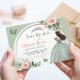 Boho Sage Green Floral Quinceañera Save the Date Card