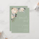 Boho Sage White Protea Pampas Grass Wedding Einladung kühne Blumenhochzeit Einladung mit einem weißen Protea Blumenarrangement auf einem schludrigen Hintergrund.