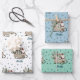 Boho Santa on Sleigh mit Geschenken Schneeflocken Geschenkpapier Set