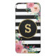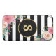Dieser Fall kennzeichnet stilvolles Schwarzes u. erröten das Goldgestreifte Muster, das mit dem inspirierten Böhmen geschmückt wird, Rosa und Pfirsich Vintage Watercolor-Blumen. Sie können das Monogramm mit Ihrer Initiale besonders anfertigen, den Schriftart, die Farbe und/oder die Größe zu ändern.