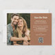 Diese trendige und Vintage Hochzeit speichern die Dattelkarten mit Retro-weiße Schrift auf der Vorderseite als Overlay auf Ihrem Foto. Die Rückseite hat einen braunen Terrakotta-Hintergrund und Elfenbeincreme-Text, und ein anderes Foto, zusammen mit einem scannable QR-Code, um Ihre Hochzeitswebsite hinzuzufügen.