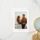 Diese Dankeschön-Karte zeigt ein romantisches Foto des Ehepaares bei Sonnenuntergang auf der Vorderseite mit einem einfachen "Danke" darunter. Die Rückseite zeigt ein gepflegtes Design mit einer eleganten Blumenillustrierung, formalem Großbuchstaben und einer Touch handgeschriebener Schrift für ein persönliches Gefühl. Der Gesamtstil ist minimalistisch, zeitlos und herzlich.