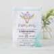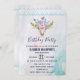 Eine Geburtstagsfeier mit türkisfarbenem und pastellfarbenem Aquarell. Ein schicker Tierskull mit Blumenstrauß auf dem Kopf und kleinen Schmetterlingen, die herumflattern. Ein niedlicher Zierrahmen mit kleinen Teardrop-Formen in hellblau.