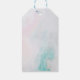 Ein Dankeschön an ein Geschenkschild mit türkisfarbenem und pastellfarbenem Aquarell. Ein schicker Tierskull mit Blumenstrauß auf dem Kopf und kleinen Schmetterlingen, die herumflattern. Ein niedlicher Zierrahmen mit kleinen Teardrop-Formen in hellblau.
