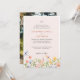 Diese stilvolle und elegante mit Monogramm Hochzeitseinladung bietet Watercolor Wilde Blume, Blätter, Libellen in zarter Aquarellfarbenpalette aus Rosa, Blau und Grün. Auf der Rückseite haben Sie Platz für Ihr Lieblings-Foto in vertikaler oder portraitorientierter Ausrichtung. Ideal für Frühlings-, Sommer- oder Hochzeiten im Herbst- oder Gartenfeiern oder für Feiern im Freien.