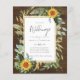 Schöne Aquarellgelb Sonnenblumen und schlängelgrüne Blätter und Blattwerk auf diesem Land rustikale boho themed Hochzeitseinladung.