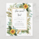 Schöne Aquarellgelb Sonnenblumen und schlängelgrüne Blätter und Blattwerk auf diesem Land rustikale boho themed Hochzeitseinladung.