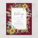 Schöne Aquarellgelb Sonnenblumen und schlängelgrüne Blätter und Blattwerk auf diesem Land rustikale boho themed Hochzeitseinladung.