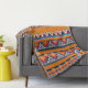 Ein böhmischer Südwesten Santa Fe gemusterter Werfer in Orangen und Blues. Für einen kühlen Pop. Fügen Sie passende Kissen und Bettdecken hinzu. Neu dekorieren mit einem südwestlichen Stil und fügen einige wunderschöne sukkulente Pflanze hinzu.