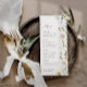 Boho Spring Blush Sage Whimsical Wildblume Elegant Wedding Menü Bohemische Style Whimsical Wildblume Einfache Menüvorlage mit Elegant Spring Pastel farbige Wildblumen und Sage Green Botanicals in handgedruckter Wasserfarbe. Die Rückseite des Menüs mit Mini-Wildblume-Bouquet ist perfekt für Hochzeiten in Boho und für Hochzeiten im Garten. Einfache, druckbare Einladungen für Frühlings-, Sommer-, Herbst- und Winterhochzeiten.