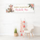 Personalisieren Sie diesen schicken Boho Stamm-Waldtiere Hintergrund-Banner mit Ihrer eigenen Formulierung einfach und schnell, einfach auf den Knopf Anpassen, um den Stil und die Platzierung des Textes weiter zu ordnen und zu formatieren. Mit einem hübschen, blumengeschmückten Teepee, bezauberndem Hirsch, Eule, Waschbär und einem bezaubernden Hirsch. Ideal für Babydusche, Geburtstagsfeier, Taufen, Taufe, neues Baby und mehr! Passende Artikel im Shop erhältlich! c) das Happy Cat Studio.