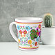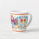 Wenn Sie viel Farbe mögen, werden Sie diese niedliche boho Stil inspiriert Tasse Liebe! Es zeichnet sich durch ein wunderschönes Design von zwei stolzen Häusern stehend Brust zu Brust aus. Ein Hahn ist rot, grün, rosa lila und schwarz, der andere rosa, rot und schwarz. Die Hahnenbilder sind mit farbenfrohen Blume in Rot, Gold, Gelb, Blau und Grün gerahmt. Das Muster wird oben und unten mit passenden roten und goldenen Linien gesäumt.