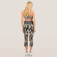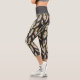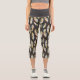 Boho Stilfedern in Korallenrosa, hellblau und goldgelb schweben auf einem dunklen Hintergrund auf diesem Paar schicke Capri-Leggings. Kleine Konfetti Flecken aus Gold sorgen für zusätzliches Interesse.