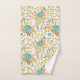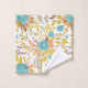 Hier ist ein hübsches Handtuchhandtuch-Set, das Ihr eigenes Monogramm trägt, am unteren Rand des großen Badetüchers. Das Blumenmuster, das auf dem Handtuch, dem Waschlappen und dem Badetuch zu sehen ist, ist in einem Boho-Stil gehalten und in Blau, Gold, Pfirsich und lila braun gehalten. Der feste Rand des Badetüchers hält Ihr Monogramm in Weiß, mit einem passenden Strauß derselben Blume.