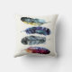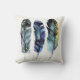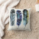 Dieses zweiseitige Kopfkissen zeigt Aquarellbilder von Vogelfedern im bohenhaften Stil in kräftigem, lebendigem Set vor einem hellen cremefarbenen Hintergrund. Es gibt vier Federn auf der einen und drei auf der anderen Seite.