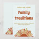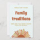 Baby Dusche Aktivität - Familientradition. Mit einem Retro-Schriftart und dem boho-sonnendurchfluteten Design in gebrannten Orange-, Braun- und Gelbtönen ist das Set der perfekte Ort für ein herzliches und einladendes Fest.