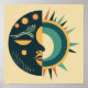 Ein niedliches Boho-Sonnen- und Mondwall-Poster mit einem minimalistischen, modernen Design in einer Farbpalette in Grün und Orange