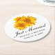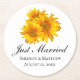 Boho Sunflower Elegante Floral Just Married Weddin Runder Pappuntersetzer