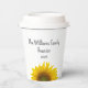 Family Wiedersehen Summer Barbecue Papiertassen mit einem bohobelgelben Sonnenblumengeschmack Foto. Mit einer schwarzen, anpassbaren Schrift können Sie Ihren eigenen Text hinzufügen. Ideal, um Ihr Party oder Ihre Grillen zu planen.