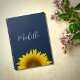 Boho Sunflower personalisiert Notebook, mit einem eleganten Blumendesign auf einem Navy Blue Hintergrund. Mit anpassbaren Skripten können Sie Ihren eigenen Namen hinzufügen. Ideal, um Ihrem Büro- oder Schulbedarf eine stilvolle Touch hinzuzufügen.