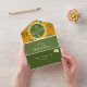 Erleben Sie Ihre Feier mit dieser atemberaubenden Einladung! Das moderne böhmische Design vereint lebendige Sonnenblumen, warme Orange- und Grüntöne und ein trendiges, handgeschriebenes Skript. Personalisieren Sie es mit einem benutzerdefinierten Monogramm, einer handgezeichnet Livebird-Illustration und Ihrem eigenen Foto auf der Rückseite. Enthält einen komfortablen QR-Code für mehr Details und einfache UAWG. Ideal für Paare, die eine einzigartige und stilvolle Art gewollt haben, ihre Gäste einzuladen!