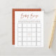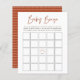 Boho Drehbuch "Baby Bingo" Grafik in rustikal orange mit line art sun details, Baby Dusche Spielblatt mit passender rustikal orange Muster Rückenlehne.