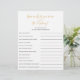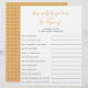 Boho Drehbuch "Wie gut kennst du die Mama?" Grafik in rustikal gelb mit Line Art Sonne Detail, Baby Dusche Spielblatt mit passendem rustikalen gelben Muster Rückenlehne.