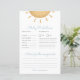 Mit diesem lustigen und farbenfrohen Boho Sunshine Baby Shower Predictions & Advice Game lassen Sie die Zukunft etwas leichter erleben! Die Gäste werden sich über die Ankunft der Kleinen freuen, von Geburtstag und Gewicht bis zu den ersten Worten und den ersten Gerichten.