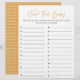 Boho Drehbuch "Name That Baby" Grafik in rustikal gelb mit line art sun details, Baby Dusche Spiel Blatt mit dem passenden rustikal gelben Muster Rückendeckung.
