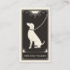Diese Visitenkarte ist im Stil einer Tarot-Karte in einer Schwarz-Creme-Farbpalette gestaltet. Die Abbildung zeigt einen Hund an einem Vorsprung, der unter der Sonne sitzt. Dies wäre ideal für jeden Hundeschlittengänger oder Hundesitzdienstanbieter, der eine alternative Visitenkarte bevorzugt und will, seine Visitenkarte unvergesslich zu machen.