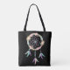 Boho Taschen-Tasche im Schwarzen mit Traumfängerbild. Traumfänger-Taschentasche im Schwarzen. Ist hier eine hübsche Tasche, zum aller Ihrer Träume zu fangen! Schwarze Taschentasche mit Pastellrosa, Minzen und dem lila farbigen Blumentraumfänger gedruckt auf Front und Rückseite der Tasche.