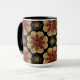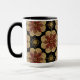 Diese dramatische Boho-Tasse ist perfekt für Ihre Hütte oder Ihr Bauernhaus. Das Muster zeigt Medallionen in Rost und Ocker in den Farben auf schwarzem Hintergrund. Bestellen Sie einen Haufen für Ihr nächstes Tee-Party oder buchen Sie ein Clubtreffen. Suchen Sie nach den passenden Küchen- und Essartikeln in der Kollektion. Dieses Design stammt aus der eigentlichen Kachel, aus Oregon Kachelmacher Fay Jones Day.