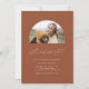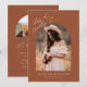 Feiern Sie Ihren Erfolg mit diesem Abschluss Einladung, entworfen mit einem atemberaubenden Arch Foto Layout, elegante Handschrift und einem warmen Terrakotta-Hintergrund. Diese Einladung eignet sich perfekt für Absolventen der Highschool, Uni oder Graduiertenschule und verbindet modernen Stil mit einer Touch von Raffinesse. Der Bogen, der Ihr Foto umrahmt, fügt eine zeitgenössische Drehung hinzu, während die handgeschriebene Schrift eine persönliche und herzliche Botschaft vermittelt. Der Terrakotta-Hintergrund verleiht Wärme und Stil und macht diese Einladung zu einem schönen und unvergesslichen Sake. Diese boho Abschluss Einladung erlaubt es Ihnen, Ihr Foto, Ihren Namen, Ihre Schule und Ihre Veranstaltungsdetails hinzuzufügen und so einen einzigartigen und persönlichen Weg zu schaffen, um Ihre Lieben zur Feier Ihrer Errungenschaft einzuladen. Egal ob Sie eine Zeremonie, ein Party oder ein Open House veranstalten, diese elegante Einladung ist der perfekte Weg, Ihre großen Neuigkeiten zu teilen.