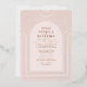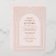 Ein einzigartiges Design mit mehreren zarten Bogen-Linien rund um Ihre Hochzeitseinladung Informationen in Rose goldgestempelt, über einem rot / weich rosa mit allen Text in Terrakotta. Auf der Rückseite fügen Sie Ihre Hochzeitsdetails und uAwg Informationen.