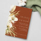 Trendy weiße Blumen, tropische Palmen und Pampas Gras Aquarell Grün Hochzeitsinspektion mit einem modernen Stil Typografie über einen eleganten Rost Sonnenuntergang Terracotta Hintergrund. +++++++ Geeignet für Sommergarten oder Wüstendestination klassischer zeitgenössischer Hochzeiten.