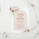Hochzeit speichern Sie die Dattelkarte mit Rost-Erdton Terrakotta-Design mit Blume und schöne Drehbuch.
