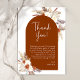 Boho Geburtstagsparty danke Ihnen Karte in Terrakotta verbrannt orange und weiß. Schönes modernes Design mit handgemalten botanischen Akzenten. Hier finden Sie Pampasgras, Blätter und Rose aus getrockneten Bananen. Trendy bohemianische Wüste Thema perfekt für Herbst, Winter, Frühling oder Sommer. Ideal für eine stilvolle Feier.