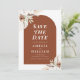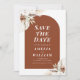 Hochzeit speichern Sie die Dattelkarte mit Rost-Erdton Terrakotta-Design mit Blume und schöne Drehbuch.