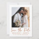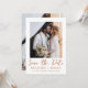 Diese boho Hochzeit speichern Sie das Datum Ankündigung Karte verfügt über zwei Fotos und chic terracotta Save the Date Buchstaben auf einem sauberen weißen Hintergrund. Die Rückseite ist ein volles Foto. Gelassen Gäste wissen, dass Sie sie zu Ihrer bevorstehenden Hochzeit mit dieser einfachen minimalistischen ein Foto Save the Date Karte einladen werden (klassische koordinierende Hochzeitseinladungen können zu einem späteren Zeitpunkt verschickt werden, und können separat erworben werden).