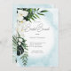 Dieses Design besticht durch eine wunderschöne tropische Vegetation und weiße Blumen auf einem sanften karibischen Aqua-Blau-Aquarell-Hintergrund. Ideal für den Zielort oder den Strand Hochzeitsdusche Brunch. Erstellt von der einfachen Farmhouse Press.