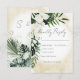Dieses Design der Hochzeitskarte zeichnet sich durch eine wunderschöne tropische Vegetation und weiße Blumen auf einem weichen, gelben Sand Aquarell aus. Ideal für die Ziel- oder Strandhochzeit. Erstellt von der einfachen Farmhouse Press.